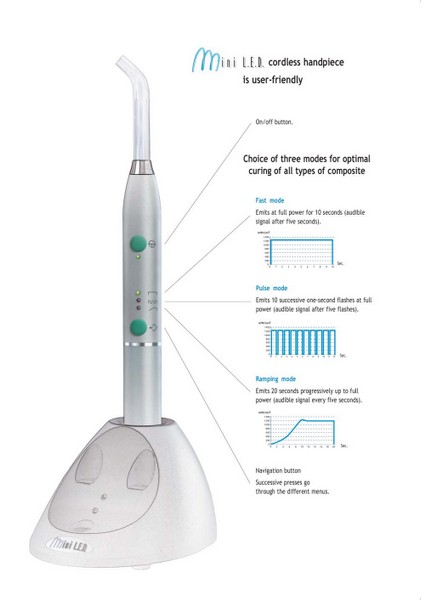 - Το πιο αποτελεσματικό εύρος φάσματος, 420-480 nm, για τον πολυμερισμό των περισσότερων σύνθετων υλικών.